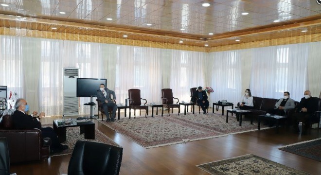 Sporun tüm branşlarına olduğu gibi voleybola da göstermiş olduğu destekten ötürü Rektör Çomaklı’ya teşekkür eden konuklar spor branşları hakkında Rektör Çomaklı ile bir süre sohbet ettiler.